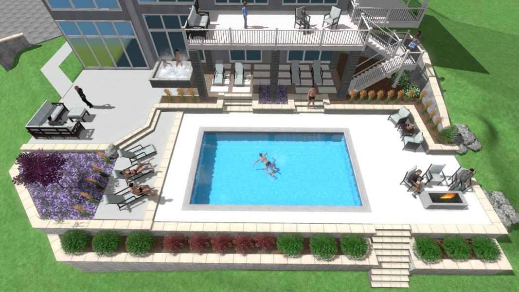 We came into this project with a hard budget and an even tighter timeline. Tasked to complete a pool, spa, pool deck, fire pit, and landscaping we quickly put together a team capable of handling the task. With early 100’ of retaining wall, 2000 square feet of concrete, and difficult access, we were able to meet this client’s wishes both in the finished product and in the cost/timeframe. The end result was an outdoor space with breathtaking views and all the amenities.