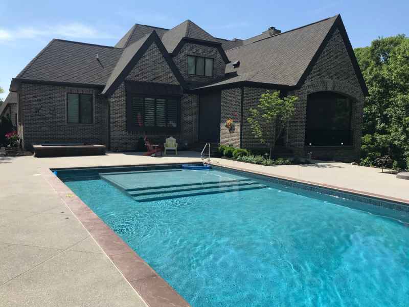 With a wide-open backyard and visually stimulating backdrop, this project was the perfect canvas with which to work. A pool-spa combination with a new pool deck, pool house, and landscaping, everyone involved in this project had a hand in this incredible final product. The 15’ x 10’ tanning shelf and 4 Intellibrite pool lights are the focal points of this impressive pool build.